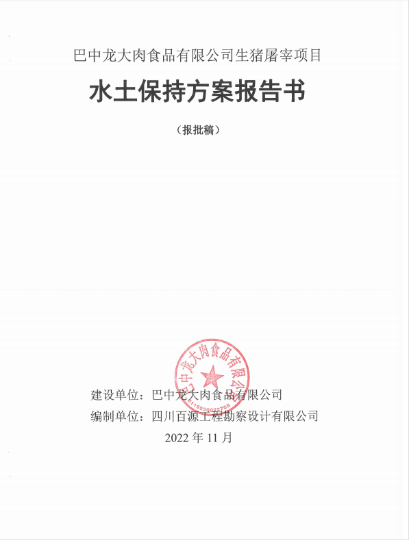 巴中尊龙凯时肉食物有限公司生猪屠宰项目水土坚持计划报告书公示